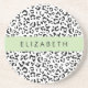 Leopard Print, Spots, Black And White, Your Name Coaster