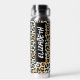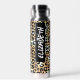 A fun leopard print covers this water bottle personalised with your name printed vertically in chic lettering on black on both sides.