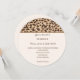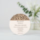 This wedding invitation is shown in a modern circle layout on a safari leopard print background with a matte paper choice.