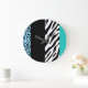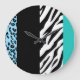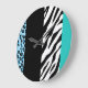Leopard Print, Zebra Print, Animal Print, Blue Large Clock