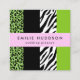 Leopard Print, Zebra Print, Animal Print, Green Square Business Card