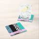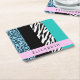 Leopard Print, Zebra Print, Blue, Your Name Square Paper Coaster