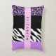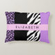 Leopard Print, Zebra Print, Purple, Your Name Decorative Cushion