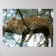 Delightful wildlife photograph captures a relaxed leopard resting high up on a tree branch.