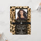 Personalised photo and text. Elaborate and rich brown and golden-tan leopard print pattern animal background showcases a ribbon and faceted jewel brooch image.