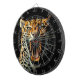 Fierce Powerful Leopard Roaring attack portrait close up with long fangs. Original vector illustration isolated on white Copyright BluedarkArt TheChameleonArt.