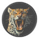 Leopard roaring attack head hockey puck