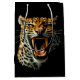 Fierce Powerful Leopard Roaring attack portrait close up with long fangs. Original vector illustration isolated on white Copyright BluedarkArt TheChameleonArt.