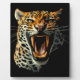 Fierce Powerful Leopard Roaring attack portrait close up with long fangs. Original vector illustration isolated on white Copyright BluedarkArt TheChameleonArt.