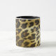 A leopard fur coffee mug with a touch of designer gloss and shine to the animal print.
