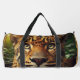 Leopard Stares While Lapping Water in Jungle Duffle Bag