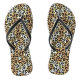 Black flip flops with a wild animal print pattern, these are perfect to dress up your outfit for any occasion.