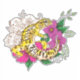 A leopard gecko sits amongst flowers and henna in. a backdrop of green