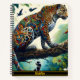 A colourful leopard adorns a Notebook perched gracefully on a branch surrounded by vibrant foliage and tropical birds, capturing the essence of wild beauty and artistic expression.