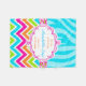 Fleece baby blanket features colourful zebra, leopard, and chevron prints personalised with baby's birth details and name.