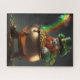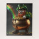 A lucky leprechaun is holding on to a big pot of gold and there is a rainbow jigsaw puzzle. Will look great in a frame after you complete the puzzle.