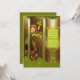 A cute St. Patrick's Day invitation featuring a young boy leprechaun walking through the forest.