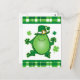Celebrate St. Patrick's Day with this cute Irish design featuring a funny dancing frog wearing a leprechaun hat, surrounded by shamrocks. Green plaid border. Perfect for family celebrations, birthday parties, St. Patrick's Day parties and parades. PinkInkArt original!