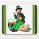 Adorable Irish Leprechaun smoking his pipe while he rests beside his pot of gold. Delightful design for St. Patrick's Day or year round enjoyment.