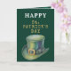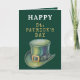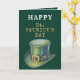 Celebrate St. Patrick's Day with this sophisticated greeting card featuring a beautifully illustrated leprechaun top hat adorned with a gleaming gold buckle on a rich forest-green background. The inside message reads "Here's a wish for luck, A reason to celebrate, And a really good day"—delivering genuine warmth and festive spirit with elegant simplicity. Decorative clover corner accents frame the message page, creating a cohesive design that balances traditional Irish iconography with modern artistic refinement. The color palette of deep green and gold appeals to adults and anyone who appreciates classic holiday symbolism presented with contemporary style. Ideal for sending heartfelt St. Patrick's Day greetings to friends, family, and colleagues who value timeless, well-designed cards.