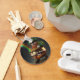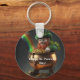 A keychain with a leprechaun carrying a pot of gold with a rainbow behind him. You can edit or personalize the text. On the back is a four leaf clover. Matching products available.