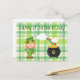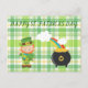 Wish someone a, "Happy St Patricks Day," with this bright and cheerful postcard. Features a green plaid background, with a Leprechaun and a Pot of Gold.
