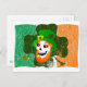 Leprechaun skull on front of grunge shamrock and grunge Irish flag. Great for Halloween, St. Patrick's day, bikers etc.