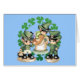 This cute St. Patrick's Day design features a trio of Irish leprechauns dressed in green. One leprechaun is carrying a small pot of gold, another is climbing on a mushroom, and the third leprechaun is holding a shamrock.