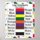 An educational poster of the colours (aka Les couleurs) in both French (francais) and English (anglais). Perfect for a French Teacher, second language teacher or home school teacher