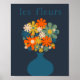 Les Fleurs Cheerful Retro Flowers in Vase Blue Poster