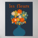 Les Fleurs Retro Flowers in Vase Blue Orange Poster