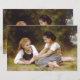 The warm autumn sun dappled through the leaves of the hazelnut tree, casting dancing shadows on the forest floor. Two young girls, Elise and Juliette, sat beneath its branches, a small pile of golden nuts nestled amongst the fallen leaves. - Elise, the elder of the two, leaned against the rough bark of the tree, a mischievous glint in her eyes. She held a handful of nuts teasingly above Juliette's head. "Try to catch them, petite souris!" she chirped, scattering the nuts with a delighted giggle. - Juliette, a whirlwind of motion, chased after the falling nuts, her laughter echoing through the woods. She scooped up a handful, her face flushed with exertion and delight. "You're impossible, Elise!" she exclaimed, her voice breathless. - Elise grinned, her eyes crinkling at the corners. "That's the idea, ma petite!" she retorted, tossing a few more nuts into the air. - They tumbled and rolled amongst the leaves, their laughter mingling with the gentle rustling of the trees. For a moment, the world seemed to shrink to just the two of them, lost in their own private game. - Juliette, catching her breath, looked around at the dappled sunlight filtering through the leaves. "It's so beautiful here," she sighed contentedly. "I wish we could stay here forever." - Elise nodded, gazing up at the canopy of leaves. "Me too," she admitted. "It's like a secret garden." - They fell silent, content in the companionship of each other and the peaceful tranquillity of the woods. Elise, ever the dreamer, began to imagine what they would do with their treasures. "Perhaps we could roast them over the fire," she mused, "and tell stories all evening." - Juliette's eyes widened. "Or maybe we could make a necklace for Grand-mère," she suggested, her voice filled with excitement. "She loves hazelnut necklaces." - As the sun began to dip below the horizon, casting long shadows across the forest floor, the girls reluctantly gathered their nuts and began to make their way home. They walked hand-in-hand, their laughter fading into the distance, leaving behind a trail of golden leaves and the lingering scent of autumn. - The woods, once alive with their playful chatter, returned to its peaceful slumber, the only sound the gentle whisper of the wind through the trees. But the memory of their laughter, like the scent of woodsmoke, lingered long after they were gone, a reminder of the simple joys of childhood and the enduring magic of a shared secret. - Les Noisettes or The Nut Gatherers is an 1882 oil painting by the French artist William-Adolphe Bouguereau. This work is in the public domain in its country of origin and other countries and areas where the copyright term is the author's life plus 100 years or fewer.