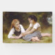 The warm autumn sun dappled through the leaves of the hazelnut tree, casting dancing shadows on the forest floor. Two young girls, Elise and Juliette, sat beneath its branches, a small pile of golden nuts nestled amongst the fallen leaves. - Elise, the elder of the two, leaned against the rough bark of the tree, a mischievous glint in her eyes. She held a handful of nuts teasingly above Juliette's head. "Try to catch them, petite souris!" she chirped, scattering the nuts with a delighted giggle. - Juliette, a whirlwind of motion, chased after the falling nuts, her laughter echoing through the woods. She scooped up a handful, her face flushed with exertion and delight. "You're impossible, Elise!" she exclaimed, her voice breathless. - Elise grinned, her eyes crinkling at the corners. "That's the idea, ma petite!" she retorted, tossing a few more nuts into the air. - They tumbled and rolled amongst the leaves, their laughter mingling with the gentle rustling of the trees. For a moment, the world seemed to shrink to just the two of them, lost in their own private game. - Juliette, catching her breath, looked around at the dappled sunlight filtering through the leaves. "It's so beautiful here," she sighed contentedly. "I wish we could stay here forever." - Elise nodded, gazing up at the canopy of leaves. "Me too," she admitted. "It's like a secret garden." - They fell silent, content in the companionship of each other and the peaceful tranquillity of the woods. Elise, ever the dreamer, began to imagine what they would do with their treasures. "Perhaps we could roast them over the fire," she mused, "and tell stories all evening." - Juliette's eyes widened. "Or maybe we could make a necklace for Grand-mère," she suggested, her voice filled with excitement. "She loves hazelnut necklaces." - As the sun began to dip below the horizon, casting long shadows across the forest floor, the girls reluctantly gathered their nuts and began to make their way home. They walked hand-in-hand, their laughter fading into the distance, leaving behind a trail of golden leaves and the lingering scent of autumn. - The woods, once alive with their playful chatter, returned to its peaceful slumber, the only sound the gentle whisper of the wind through the trees. But the memory of their laughter, like the scent of woodsmoke, lingered long after they were gone, a reminder of the simple joys of childhood and the enduring magic of a shared secret. - Les Noisettes or The Nut Gatherers is an 1882 oil painting by the French artist William-Adolphe Bouguereau. This work is in the public domain in its country of origin and other countries and areas where the copyright term is the author's life plus 100 years or fewer.