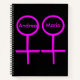 This awesome notebook is designed for lesbians. It features two pink female symbols standing side by side. The background is black and there is customisable pink text inside each of the symbols to put names.
