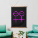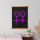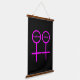 This awesome wood topped wall tapestry is designed for lesbians. It features two pink female symbols standing side by side. The background is black and there is customisable pink text inside each of the symbols to put names.
