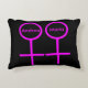 This awesome pillowis designed for lesbians. It features two pink female symbols standing side by side. The background is black and there is customisable pink text inside each of the symbols to put names.