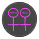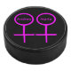 This awesome hockey puck is designed for lesbians. It features two pink female symbols standing side by side. The background is black and there is customisable pink text inside each of the symbols to put names.