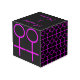 This awesome photo cube is designed for lesbians. It features two pink female symbols standing side by side. The background is black and there is customisable pink text inside each of the symbols to put names.