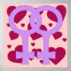 Red hearts form the backdrop for two intertwined symbols for Women and Venus that is perfect for wedding rehearsals, an informal marriage ceremony, attendant and newlywed gifts.