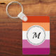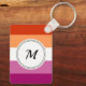 Keychain with the lesbian pride flag with rainbow stripes of pink, white, and orange, lesbian pride design with a custom text field for your initial
