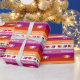Wrapping paper with the lesbian pride flag with little hearts in the centre of the design. Pink, white, and orange flag of the lesbian pride movement; with an editable text field for your name or message
