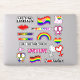 An assortment of lesbian stickers with the pride flag, venus symbols, fun meme quotes, and more.