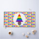 This awesome desk mat features a rainbow Christmas Tree with 2 small pink female symbols sitting on top of the tree. Each layer of the tree is a different colour of the rainbow. The tree sits in a brown pot and is surrounded by presents. Each present is also a colour of the rainbow, with a different rainbow coloured ribbon and bow. A lovely design for lesbian couples this Christmas.