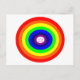 This lovely postcard is designed for lesbians. It features a round rainbow with two little pink female symbols, standing side by side in the centre of the rainbow.