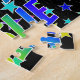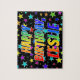 This vibrant, lively, birthday-themed jigsaw puzzle design has the message "HAPPY BIRTHDAY, LESLIE" with the characters having a colourful rainbow spectrum inspired gradient pattern, in addition to an exciting star field background pattern. A vibrant puzzle like this might be a fun way to send birthday wishes to somebody named Leslie. [~Z0000468]