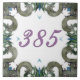A arabesque design in green, blue and purple, frames your house number in the style of spanish azulejo tiles, .
