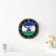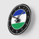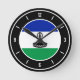 Lesotho Flag Elegant Round Clock with the Lesotho flag positioned in the middle and lovely white clock numbers on the clock edge. Delightful black background with the white oval elements finalise the design putting emphasis on the elegance. Beautiful combination of black and white with the skilful integration of the national flag colours make this clock the perfect gift and the great show piece on the wall. © 2024 CountriesOfTheWorld