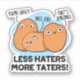 Less Haters More Taters Funny Potato Pun features a cute trio of potatoes being sweet taters. Perfect pun gift for family and friends who love cute tater puns.
