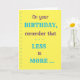 A humourous twist on the "less is more" aphorism, which originated in Robert Browning's poem "Andrea del Sarto," this birthday message encourages "less restraint, more cake!"