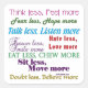 Think less, Feel more Frown less, Smile more Talk less, Listen more Hate less, Love more Fear less, Hope more Eat less, Chew more Sit less, Move more Doubt less, Believe more